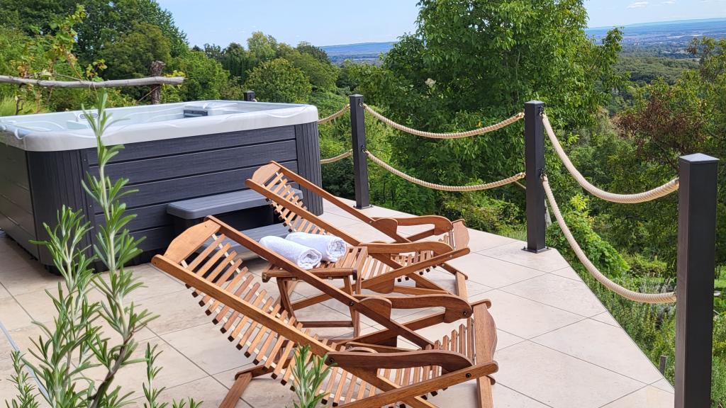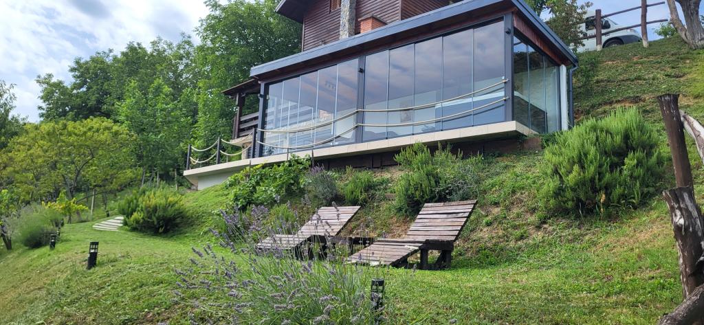 Die Bergvilla Carin liegt in einem ruhigen Teil des Naturparks Samoborsko gorje. Dank ihrer beneidenswerten Hanglage bietet die Villa einen herrlichen Panoramablick über die gesamte Tiefebene im Umkreis von 100 km. Die Villa verfügt über 120 m² Wohnfläche und bietet Platz für bis zu 8 Gäste in 4 elegant eingerichteten Schlafzimmern mit Doppelbetten, jeweils mit Fernseher und schöner Aussicht. Kostenloses WLAN, eine Terrasse mit Grill und Essbereich, ein Whirlpool für 5 Personen, ein Kaminofen, Heizkörper und eine Klimaanlage sorgen für angenehme Temperaturen, sodass die Villa sowohl im Sommer als auch im Winter komfortabel ist. Zur Unterkunft gehören private Parkplätze für vier Fahrzeuge und ein kinder- und familienfreundlicher Außenbereich. Dank ihrer erhöhten Lage bietet die verglaste Terrasse mit Whirlpool, die zu jeder Jahreszeit zum Verweilen einlädt, einen Panoramablick auf Zagreb, Jastrebarsko, Karlovac, das Naturschutzgebiet Crna Mlaka und Petrova gora. Die Umgebung bietet zahlreiche Möglichkeiten für einen aktiven und erholsamen Urlaub.