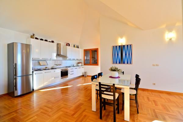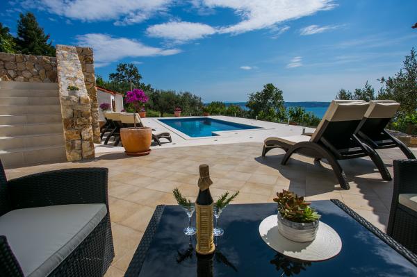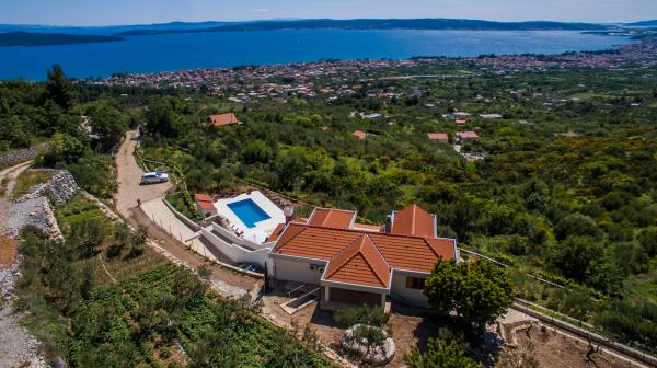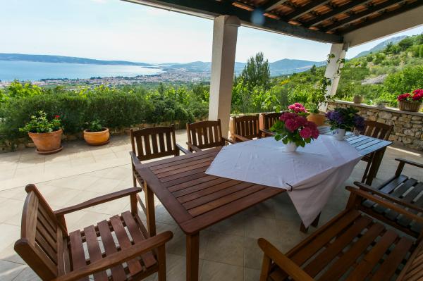 Unglaubliche fantastischen Blick, werden Sie nie wollen, um die Villa zu verlassen Berry. Das Landhaus, Landhaus mit Außenpool 8x4 m auf dem Berg Kozjak, auf der Höhe von 210 m über dem Meeresspiegel, mit direktem Blick auf das Meer und die Inseln. Zugang zur Villa ist durch die Asphaltstraße. Das Hotel liegt in einem Olivenhain und Obstgarten in der Umgebung der alten Olivenbäumen. Der Innenhof ist mit einheimischen Pflanzen bepflanzt. Entfernung von der Stadt Split und Trogir ist 15-20 Minuten, und die Stadt Kastela 10 min. Die Villa liegt auf dem Wanderweg entfernt. Die Lage der Villa ist das Gelände der alten Villa rustica aus der Römerzeit. Die Villa besteht aus 2 Wohnungen A (4 1) jeweils auf ihrer Etage und ist in allen ihren Teilen vermietet. Wohnung für 8 Personen in der Haupt Betten und 2 Zustellbetten. Jede Wohnung hat eine Küche, Ess- und Wohnzimmer und zwei Schlafzimmer und Badezimmer und einen großzügigen Balkon, Terrassen und Veranden. Die Villa ist auch ein Brotbackofen - Barbecue mit seinen eigenen Sommer eine überdachte Küche. Heizung gibt es im Haus und nur im Erdgeschoss (max. 5 Personen).