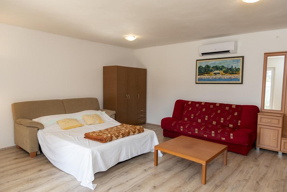 Die Villa Emma ist ein kleines Ferienhaus im Erdgeschoss in einem ruhigen Teil von Medulin. Zwei Zimmer, eine Küche, ein Badezimmer und eine große überdachte Terrasse mit Grill bieten allen Komfort für drei Personen. Ein eingezäuntes Grundstück von mehr als 1000 m2 bietet Privatsphäre, Ruhe und einen privaten Parkplatz. Es ist 500 m vom Meer und 1,5 km vom Zentrum von Medulin und 600 m vom Ufer, dem nächsten Supermarkt oder Restaurant entfernt. Die voll klimatisierte Küche verfügt über kostenfreies WLAN, einen TV, einen Herd mit Backofen, eine Mikrowelle, einen Kühlschrank und einen Geschirrspüler sowie ein Bad mit einer Waschmaschine. In dem neuen, noch unbebauten Teil der Stadt, nicht weit vom Stadtzentrum entfernt und mit allen notwendigen Annehmlichkeiten ausgestattet, bleiben Sommertrubel und Lärm verschont. Die Asphaltstraße ist nur 50 m vom Eingang der Unterkunft entfernt und die Stadt Pula und der Flughafen sind etwa zehn km entfernt. Das Haus wurde 2018 komplett renoviert und das umzäunte Land und die umliegende Natur bieten Ruhe und Privatsphäre. Die Eigentümer wohnen nicht in der Nähe der Unterkunft, stehen jedoch jederzeit für Unterstützung zur Verfügung. .