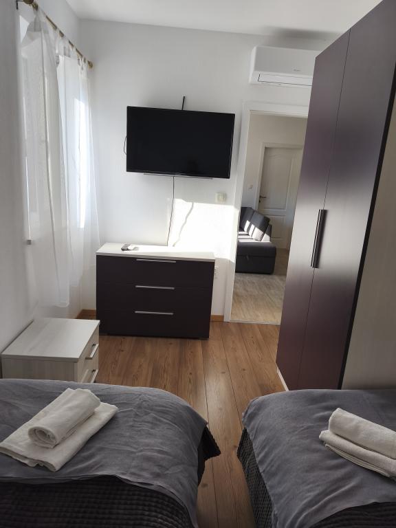 Die Villa Leen Dubrovnik befindet sich im Dorf Đurinići, 18 km vom Flughafen, 40 km von der Stadt Dubrovnik und 18 km von Herceg Novi in Montenegro entfernt. Die Villa liegt in der Natur, es gibt keine anderen Gebäude in der Nähe, daher ist die Villa ideal für Ruhe und Entspannung. Die Villa verfügt über eine schöne Terrasse mit Blick auf die Berge und die Natur, 3 Schlafzimmer, ein großes Wohnzimmer und eine Küche sowie zwei Badezimmer. Alle Einheiten sind klimatisiert und verfügen über einen Fernseher. Vor dem Haus gibt es einen schönen Garten und einen Parkplatz. Der Strand Monika liegt 3 km von der Villa entfernt. Die Stadt Molunat mit einem Supermarkt und einem Restaurant ist nur 10 Minuten entfernt. Haustiere auf Anfrage!