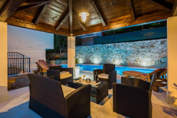 Voll ausgestattete und moderne Villa im Jahr 2015 renoviert. Dieses komfortable Haus mit Pool liegt in einer schönen in Duce befindet. Das Erdgeschoss verfügt über einen geräumigen Wohnbereich mit Platz für Animation, Tischfußball, Dart und Billard, während die oberen Stockwerke der Schlafzimmer mit Bad und Wohnzimmer. Alle Terrassen haben Meerblick. Der Außenpool ist 32 m2 groß mit Sonnendeck, mit hochwertigen Liegestühlen und einem Pavillon mit Sitzmöglichkeit. Im Hinterhof Grill und Kinderspielplatz. Es ist ein Parkplatz für 5 Autos. In der Nähe der Villa gibt es einen Naturstrand, ideal für Familienurlaub, Restaurant, Shop und Café.
