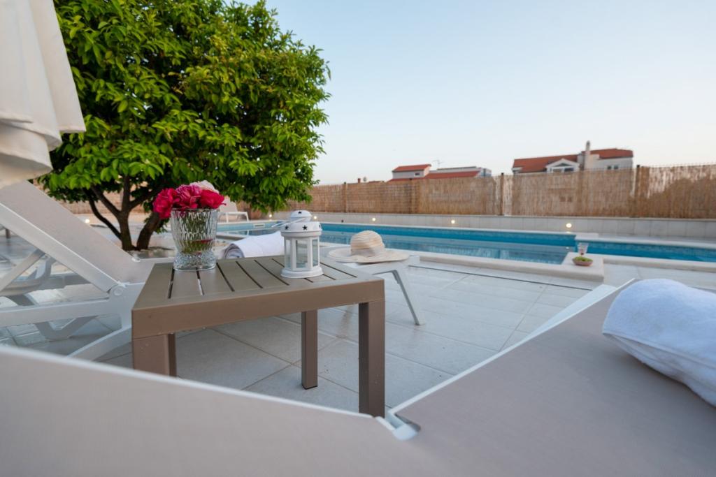 Sun Gardens ist ein charmantes Haus zur Miete im Vorort Šibenik, Podsolarsko, nur 1 km vom beliebten Amadria-Park entfernt. Dieses zwischen Olivenbäumen versteckte Haus verfügt über 2 Schlafzimmer, ein Badezimmer, einen großen Garten und einen Spielplatz für Kinder sowie ein großes Esszimmer und eine Küche, die sich in einem Glasbereich befinden und sich perfekt für abendliche Zusammenkünfte eignen. Das größte Plus ist der große private Pool und die Liegewiese für entspannte Momente.