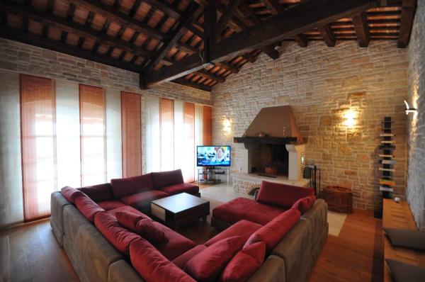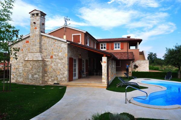 Ein idealer Ort für alle, die von Staus und zu jeder Zeit des Jahres mit Freunden und Familie entfliehen wollen, genießen Sie die Schönheit und das Klima der Region Istrien. In einer außergewöhnlichen Lage, am Rande des Dorfes Labinci / Santa Domenica, befindet sich diese schöne Villa. Es wurde 2008 im traditionellen istrischen Stil gebaut. Die zauberhaften Blick auf das Meer, die Olivenhaine und Weinberge, können Sie bis zu 11 Personen genießen, was die Unterkunftskapazität Gehöfte. Modern eingerichtete Villa ist umgeben von einem schönen Garten umgeben, und davor gibt es einen Außenpool und gut ausgestattete Küche Garten. Während Ihres Aufenthaltes können Sie die Vorteile der echten Wellness, die einem der Badezimmer mit Jacuzzi-Badewanne ausgestattet bietet genießen können, während der andere mit Sauna und Türkischem Bad bereichert. Es ist ein geräumiges, großes Esszimmer für 25 Personen, die auch als Arbeitsfläche für geschäftliche Meetings, sowie komfortable, entspannende Wohnzimmer mit offenem Kamin, das lockt, um den Abend zu verbringen dienen können.