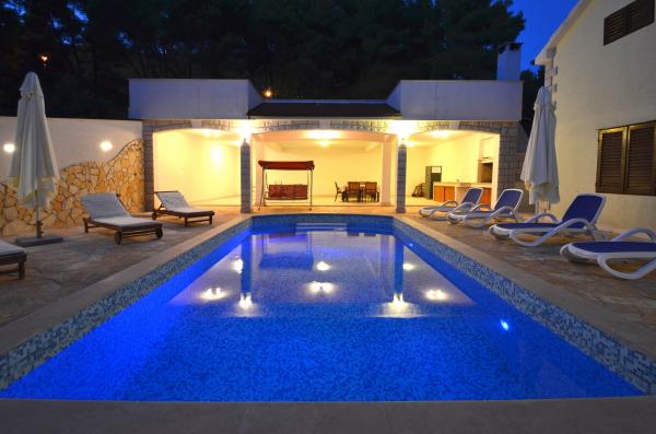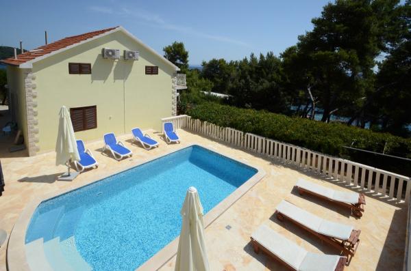 Villa Daria liegt auf der Insel Korcula. Villa verfügt über 5 Schlafzimmer, 4 Badezimmer und kann 11 Personen beherbergen. Die neuen Unterhaltungsmöglichkeiten für Kinder befinden sich direkt vor dem Haus. Das ganze Haus ist akklimatisiert und hat 230 m2 mit Terrassen und Blick aufs Meer. Neben dem Pool ist ein Grillplatz mit Küche, Tischtennis. Die Villa hat eine absolute Ruhe. Für diejenigen, die totale Entspannung haben wollen, genießen Sie lange sonnige Tage und klare kristallklare Wasser der Insel Korcula, ist unser Haus die beste Lösung, um Energie und Vitalität für Ihren Aufenthalt in Kroatien zu erholen. Die gesamte Villa ist mit Klimaanlage ausgestattet und ist weniger als 50 Meter vom Meer entfernt.