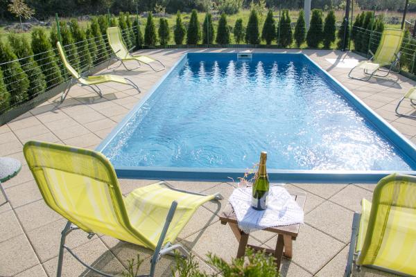 Dorian Villa ist komplett ausgestattet und moderne Villa mit Schwimmbad für einen Aufenthalt von 4 bis 6 Personen. Es befindet sich am Eingang der Stadt Rovinj auf der Nordseite in einer ruhigen und natürlichen Umgebung. Es ist von viel Grün und einem großen Garten für die Gäste, die mit einem Grill zur Verfügung steht, umgeben. Sie haben Zugang zu zwei Schlafzimmer, zwei Bäder, eines mit Dusche und das andere mit Badewanne, voll ausgestattete Küche und Geschirrspüler und ein Wohnzimmer.