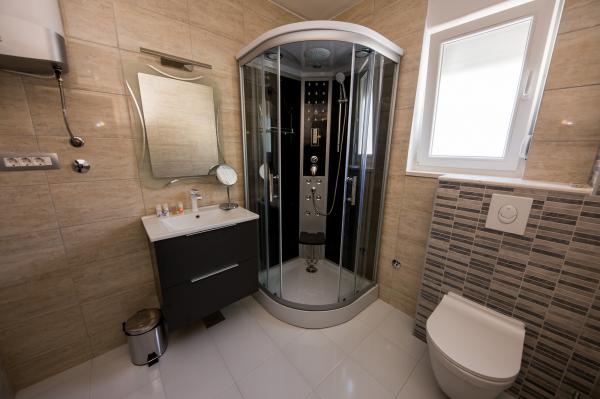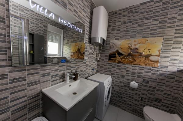 Das VILLA HEDONIST befindet sich in Seget Vranjica, 3 km von Trogir entfernt. Es verfügt über 5 Bäder, 4 Zimmer, finnische Sauna, Fitnessraum, Wohnzimmer, Küche und Esszimmer. Jedes Zimmer verfügt über ein eigenes Bad und Sat-TV, eine Klimaanlage, einen Safe, einen Kleiderschrank. Vor dem Haus befindet sich ein 28 m² großer Pool mit 6 Schränken und einem Holzbett mit Überlauf. Whirlpool am Pool für 5 Personen. Im Garten gibt es ein Kunstrasen mit Spielplatz für Kinder, Trampolin, Schaukeln, Rutschen und Grillen. Hinter dem Haus befindet sich ein Parkplatz für 3 Autos.