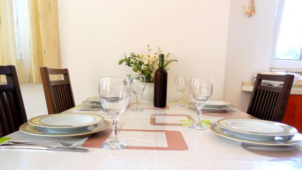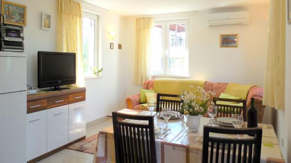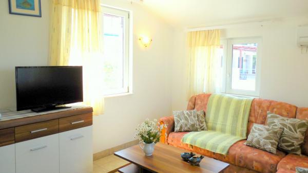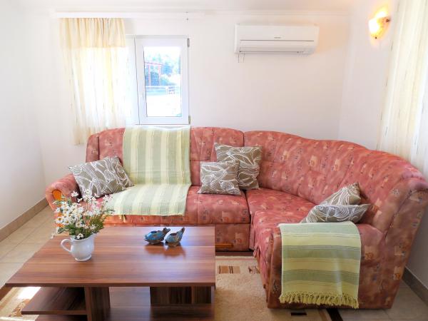 Diese wunderschöne Sunray-Villa mit zwei Wohnungen lädt Sie herzlich ein, Ihren Urlaub zu genießen. Beide Apartments erstrecken sich über 57 m² mit herrlichen weißen Villen am Meer. In dem hell eingerichteten Ferienhaus finden Sie zwei Schlafzimmer mit Doppelbett und zwei Zweibettzimmer. Das Wohnzimmer ist offen gestaltet und verfügt über einen Essbereich, ein großes Schlafsofa für eine weitere Person, Sat-TV und eine Stereoanlage und führt direkt auf die möblierte Terrasse: Ein schöner ruhiger Ort im Schatten an heißen Sommertagen. Die voll ausgestattete Küche bietet alles, um Ihnen und Ihrer Familie die Freude am Kochen zu bereiten. Das Badezimmer verfügt über eine Dusche, ein WC, ein Bidet und eine Waschmaschine. Vila Sunray wird nur komplett vermietet. Diese Preise gelten für das ganze Haus, dh A1 und A2 zusammen.