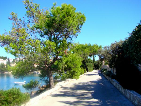 Mit zwei schönen, 57 m² großen Apartments umgibt die Sunray-Villa einen liebevoll gestalteten Garten von 230 m2 mit viel Platz zum Entspannen und Erholen, umgeben von Olivenbäumen, Mimosen und Blumen. Es gibt eine herrliche Sonne auf der Terrasse im Garten neben dem dalmatinischen Grill, einem großen Esstisch im Freien und Teakholz-Liegestühlen. Ein paar Erfrischungen finden Sie unter der Außendusche. Ihre Familie und Freunde werden diesen Ort lieben. Nur 50 Meter von der Sunray Villa entfernt liegt ein wunderschöner heller und weitläufiger Kieselstrand, der sich direkt in das türkisblaue Meer erstreckt. Am Strand gibt es wunderschöne kleine Strandbars, und nahe gelegene Restaurants laden an heißen Abenden zum Abendessen unter Sternen ein.