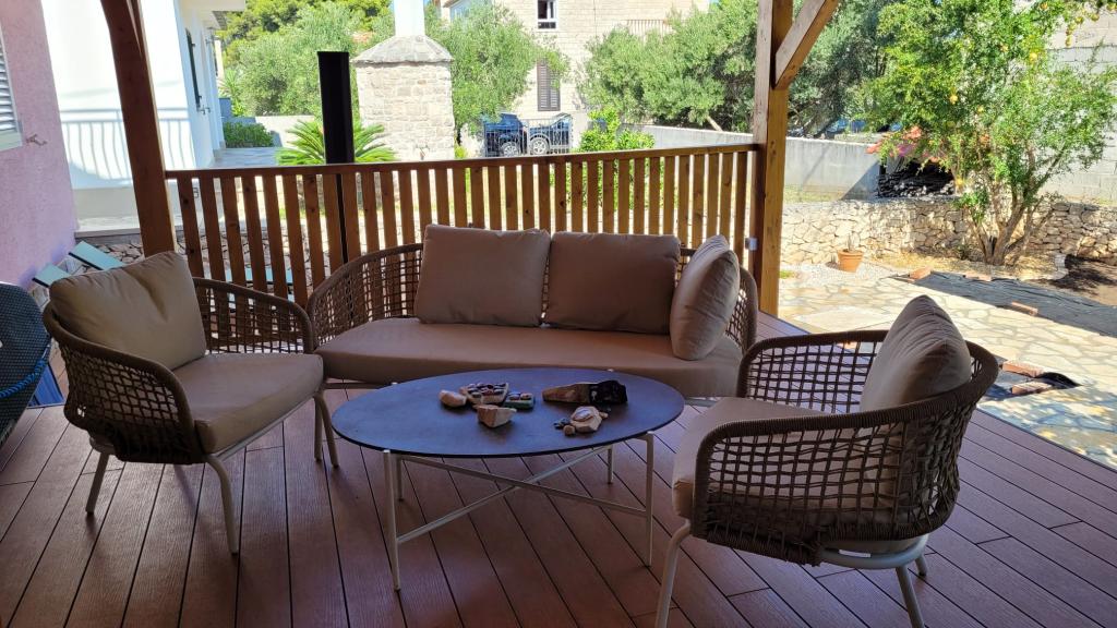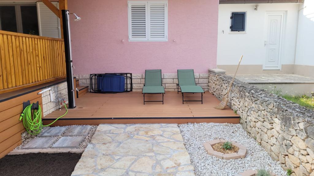 Das Ferienhaus Roza ist eine frisch renovierte und geräumige Oase. Unser großes Haus bietet vier komfortable Schlafzimmer, zwei Badezimmer und ein zusätzliches WC – genug Platz für alle. Genießen Sie den Komfort einer voll ausgestatteten Küche, in der Sie alles finden, was Sie für die Zubereitung Ihrer Lieblingsgerichte, Ihres Morgenkaffees oder eines erfrischenden Eisdesserts benötigen. Das Leben im Ferienhaus Roza setzt sich natürlich in unseren wunderschönen Außenbereichen fort. Entspannen Sie sich auf der geräumigen, überdachten Terrasse, die sich perfekt für Mahlzeiten im Freien oder einfach zum Genießen der Inselbrise eignet, egal ob bei Regen oder Sonnenschein. Krempeln Sie die Ärmel hoch und bereiten Sie köstliche Gerichte auf dem Grill zu, entspannen Sie sich in unserer gemütlichen Sitzecke im Freien, speisen Sie am großen Esstisch und erfrischen Sie sich nach einem Tag am Strand unter der warmen Außendusche. Das Ferienhaus liegt in unmittelbarer Nähe zum Sandstrand, wo Sie auch die Strandbar finden. Eine Bäckerei mit frischen Backwaren ist ebenfalls in der Nähe.
