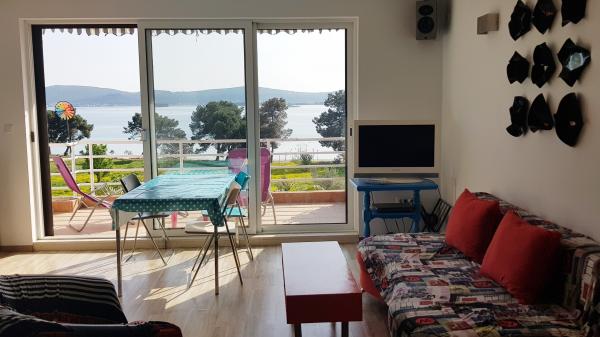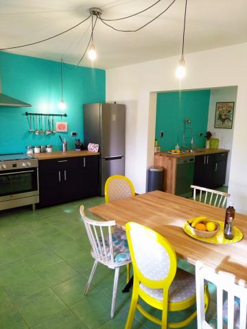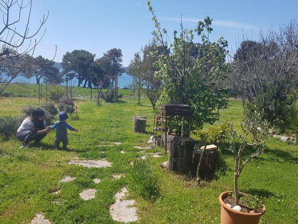 Komplett und modern ausgestattetes Haus mit 2 separaten Wohnungen und einer gemeinsamen Küche und Garten. Jedes Apartment verfügt über eine Küche, Klimaanlage und einen fantastischen Meerblick. Ideal für zwei Familien, weil sie Privatsphäre bieten, aber auch Platz für Geselligkeit bieten. Das Haus verfügt über 3 Bäder, einen Geschirrspüler und eine Waschmaschine. Der Garten ist geräumig und wunderschön. Eine Wohnung ist 4 2 und die andere 2 2. Gesicherte kostenlose Parkplätze für 2 Autos. Hinweis: Das Haus ist nicht frei stehend. Für Kinder im Garten haben wir eine kleine Rutsche und eine Schaukel, und wir haben ein Babybett und einen Fütterungsstuhl.