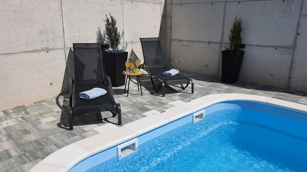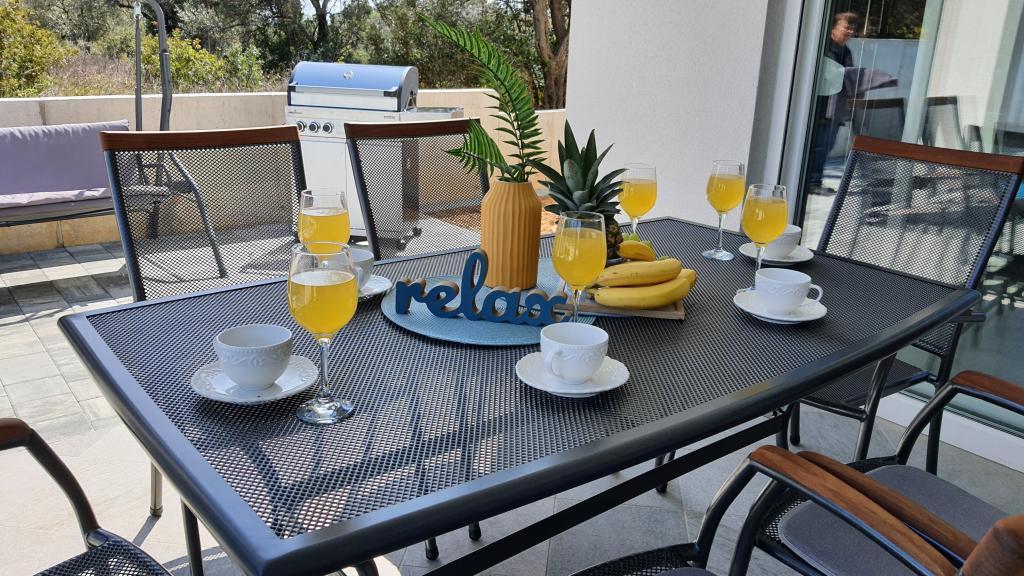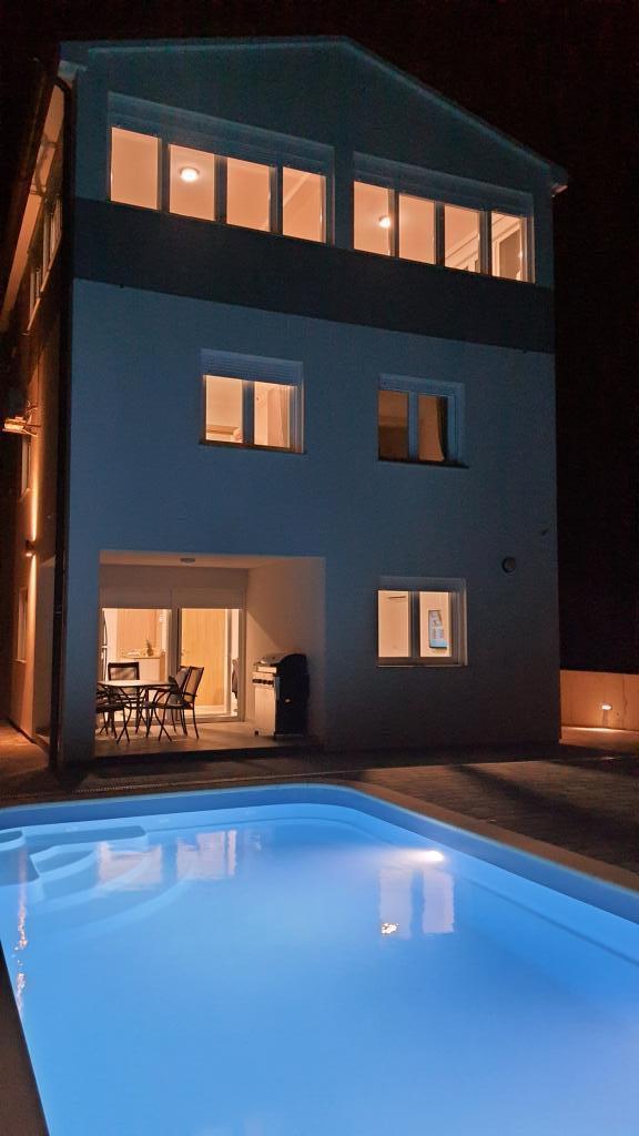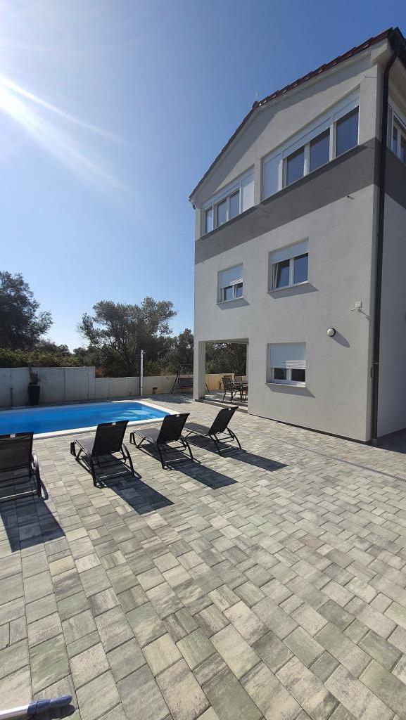 Komplett renoviertes, umzäuntes Ferienhaus mit beheiztem Pool bestehend aus 4 Wohnungen. Die Apartments A1, A2, A3 bestehen aus Küche, Bad, zwei Schlafzimmern (Bett 160x200 und Etagenbett 100x200), Terrasse, Wohnzimmer. A4 ist auf zwei Etagen. Das Erdgeschoss verfügt über ein Badezimmer, eine Küche und ein Wohnzimmer und im Obergeschoss über 2 Schlafzimmer (180x200 und 2x100x200), eine Lounge und ein Badezimmer. Das Haus verfügt über einen Parkplatz, der ebenso zugänglich ist. Es verfügt über einen großen Gasgrill und einen Gemeinschaftsbereich. Der Pool ist 7,5 x 3,5. Jedes Apartment verfügt über eine Waschmaschine, ein A4-Gerät und einen Geschirrspüler. Alle Wohnungen sind klimatisiert, verfügen über Sat-TV und WI-FI. Feuerschutzsystem. Wir sind 350-400 m vom Strand entfernt, à 700 m vom Stadtzentrum. Es gibt viele Strände in der Umgebung, die man sich nicht entgehen lassen sollte. Wir sind 2 km nach Biograd, à 22 nach Zadar nach Šibenik ca. 30 km. In der Nähe befinden sich die Einkaufszentren Lidl, Plodine, Kaufland, Bure Center, Supernova. Naturpark Vrana-See 5 km. Adrenalinpark Biograd ca. 3 km. Vom 1.7.-31.8. der Gastgeber wohnt im Haus.