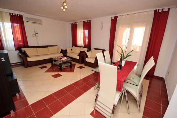 Die Wohnungen befinden sich auf der Insel nur 2 km vom Stadtzentrum entfernt. Sie können die Sonne und den Strand, der nur 200 Meter entfernt von der Villa genießen. Wenn Sie kein Fan von überfüllten Stränden, bietet Ihnen der Insel Ciovo viele einsame Buchten und Strände, um die Ruhe und Einsamkeit zu genießen. Es ist eine Reederei zum Strand in Okrug Gornji Trogir (am Wasser). Parkplatz und Grill stehen Ihnen zur Verfügung! Free Internet! Villa 3A O. Gornji auf der Insel Ciovo. Die historische Stadt Trogir durch eine Brücke mit der Insel Čiovom.Trogir gilt als die schönste Perle Dalmatiens verbunden Der Kern der Altstadt von Trogir ist seit 1997 unter dem Schutz der UNESCO. Villa 3A ist nur zwei Kilometer von der Stadt Trogir. Das Haus wurde gebaut 2003. Es gibt fünf kleine und zwei große Luxus apartmana.Do beliebtesten Strände (Copacabana), brauchen Sie nur fünf Minuten zu Fuß. Am Strand gibt es Bars, Restaurants, Geschäfte