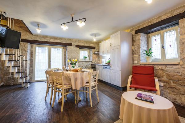 Komplett eingerichtete Villa mit Jacuzzi in der Nähe von Porec, 5 km von Visnjan. Neben dem Jacuzzi beinhaltet der Preis die Verwendung von 4 Fahrräder für Erwachsene, sondern auch für Kinder von 4-8 Jahre. Darüber hinaus gibt es auch ein Quad und den legendären Renault 4. Außerhalb Sie erwartet und eine schöne große Terrasse mit Außenküche und Grill und Liegewiese mit bequemen Holzstühlen. Zur Verfügung steht ein Garten, in dem Gemüse der Saison wie Tomaten, Spinat, Karotten, Kohl, Grünkohl, Petersilie, Salat, Radicchio, und es gibt auch Kräuter wie Rosmarin, Salbei, Lavendel, Lorbeer ... aber aus unserem Obstgarten Kostenlos Sie können die Früchte der Saison (Kirschen, Pflaumen, Pfirsiche) verwenden. Wohnzimmer (Küche, Ess- und Wohnzimmer mit Kamin) und WC befinden sich im Erdgeschoss befindet, während (2) Schlafzimmer und ein Badezimmer auf dem Boden. Die Küche ist zusätzlich zur Standard-Ausrüstung zusätzlich ausgestattet mit Geschirrspüler, Kühl- und Gefrierschrank, Toaster, Mikrowelle, Mixer, shake-ROM, Ofenbauer, Wasserkocher.