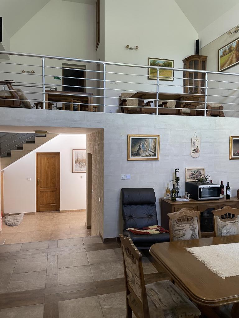 Die Villa ist komplett für einen angenehmen Aufenthalt eingerichtet und mit 4 Sternen kategorisiert. Es besteht aus vier Schlafzimmern, zwei Badezimmern (eines mit Hydromassage-Badewanne für zwei Personen und das andere mit Duschkabine), einem großen Wohnzimmer und einer Küche, einer Galerie, einer geschlossenen Terrasse für zehn Personen mit Grill und Brotbackofen. Die Heizung erfolgt über eine Fußbodenheizung und die Zusatzheizung erfolgt über einen Holzkamin. Großer Parkplatz neben dem Gebäude, Kinderspielplatz neben der Kirche und im Gebäude. Da ich eine Photovoltaikanlage habe, ist die Fußbodenheizung elektrisch. Die Unterkunft verfügt über 8 Betten und bei Bedarf besteht die Möglichkeit, 2 Zusatzbetten aufzustellen